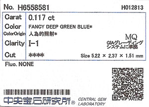 | カラー | Fancy Deep Green Blue ( ファンシー・ディープ・グリーン・ブルー ) |