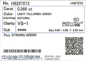 天然グリーンダイヤモンド ルース(裸石) 0.369ct 【蛍光性がストロンググリーンのレアグリーンダイヤモンド】【中央宝石研究所ソーティング袋付】