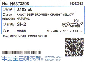 | カラー | Fancy Deep Brownish Orangy Yellow ( ファンシー・ディープ・ブラウニッシュ・オレンジー・イエロー ) |