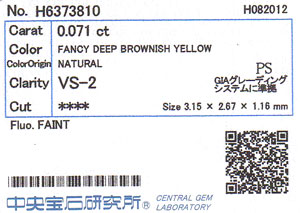 | カラー | Fancy Deep Brownish Yellow ( ファンシー・ディープ・ブラウニッシュ・イエロー ) |