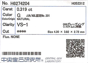 ![]() ▲中央宝石研究所 ソーティング画像 このソーティング袋をお付けしてお届けします。 |