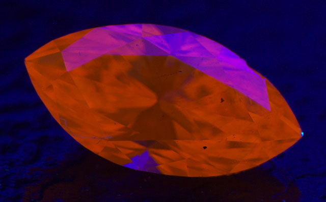 このダイヤのように元の色がイエロー系で、蛍光性がオレンジというキレイなものは持っていても良いダイヤだと思います。