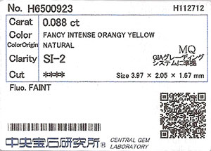 カラー Fancy Intense Orangy Yellow (ファンシー・インテンス・オレンジー・イエロー)