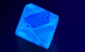 ![]() ▲蛍光性画像 黒い紙などの上に置いて、ブラックライトにあて、部屋を暗くするとこのような鮮やかな蛍光性を示します。 ![]() ▲左右に欠け、大きめの亀裂、摩耗があります。 ![]() ▲完全な正八面体ではないですが、結構整っています。複数の逆正三角形のトライゴンもお判り頂けると思います。 ![]() ▲完全な正八面体ではないですが、結構整っています。上部左側に逆正三角形のトライゴンもお判り頂けると思います。 |