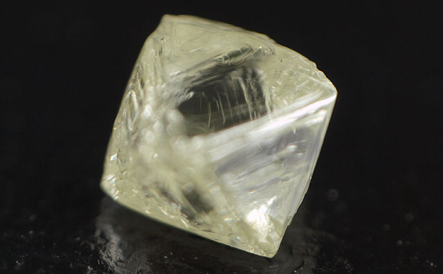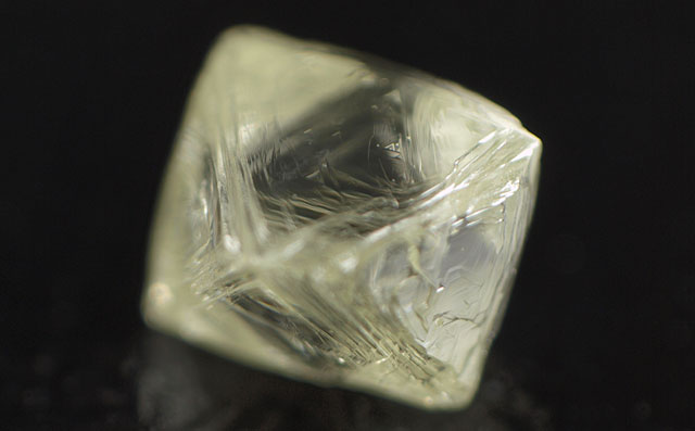 ●レアな『ダイヤモンド原石』。●理論上は正八面体の結晶構造を持ちますが、長い間の地殻変動などで、角が削れたり欠けたりして、このような形状になります。●トライゴン(小さな正三角形)が確認できます。肉眼では判りませんが、ルーペで見ると角度によってはトライゴンが確認できます。●不思議な模様があります。自然の神秘さを感じます。数億年を地球の内部で過ごしてきたこの原石の神秘の一面を感じずにはいられません。●ごくごく薄~いイエローの色調です。● 表面の状態:磨耗のような痕跡が確認できます。●蛍光性は「青色」です。●ブラックライトなどにあてると、青色~青白色になりますので、見ていて時間を忘れます。●カラオケボックスなどブラックライトのある場所ですと、通常光とは違う色を楽しむことが出来ると思います。ご注意 : ブラックライトによって波長が色々あるらしく、ブラックライトによっては少し違う色合いに見える場合もあります。あらかじめご了承下さいませ。●リングやペンダントなどへの加工(別料金)も承りますので、お気軽にお問い合わせくださいね!