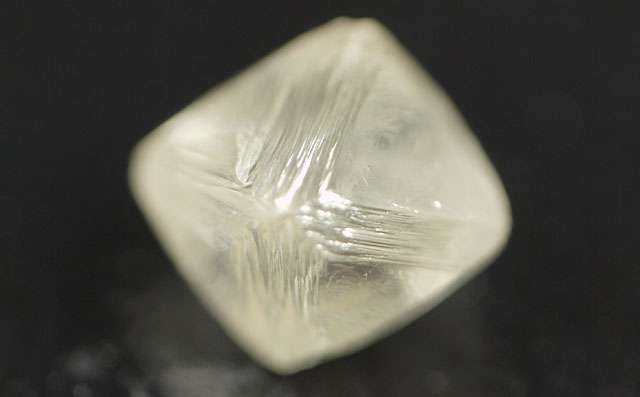 ●レアな『ダイヤモンド原石』。●理論上は正八面体の結晶構造を持ちますが、長い間の地殻変動などで、角が削れたり欠けたりして、このような形状になります。●各辺に縦縞の模様があります。数億年を地球の内部で過ごしてきたこの原石の神秘の一面を感じずにはいられません。●ごくごく薄~いイエローの色調です。● 表面の状態:欠けや磨耗のような痕跡が確認できます。●リングやペンダントなどへの加工(別料金)も承りますので、お気軽にお問い合わせくださいね!