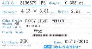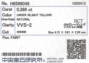 | カラー | Fancy Light Yellow (ファンシー・ライト・イエロー)・・・AGT Under S ( Light Yellow ) アンダーS ( ライト・イエロー )・・・CGL |