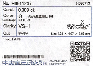 | 製品名 | 【58面体カット】オクタゴナル・ブリリアントカット(通称:ハッピーエイト) ダイヤモンド 0.309ct, 中央宝石研究所 |