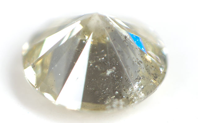 ●蛍光性の面白いダイヤモンドです。●蛍光性とは、紫外線やX線など波長の短い光線を当てると放射ルミネッセンスの結果、第一次光とは違った色の第二次光を発する性質を言います。一般的には、ブラック・ライトなどを当てることで簡単にダイヤなどの蛍光性を楽しむことが出来ます。●ダイヤモンドは通常、蛍光性が無い(None)、弱い(Faint)、が多く、蛍光性として多い色はブルーとなっています。このダイヤのように蛍光性が鮮やかなオレンジというキレイなものは持っていても良いダイヤだと思います。●カラオケボックスなどブラックライトのある場所ですと、通常光とは違う色を楽しむことが出来ると思います。ご注意 : ブラックライトによって波長が色々あるらしく、ブラックライトによっては少し違う色合いに見える場合もあります。あらかじめご了承下さいませ。●ほんのりイエローのダイヤモンドです。カラーダイヤモンドの範疇ではなく、いわゆる通常の無色透明のダイヤモンドの範囲です。●クラリティは、I-1です。内包物や欠けなどが肉眼でも確認できます。