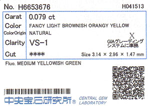 | カラー | Fancy Light Brownish Orangy Yellow ( ファンシー・ライト・ブラウニッシュ・オレンジー・イエロー ) |