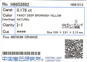 | カラー | Fancy Deep Brownish Yellow ( ファンシー・ディープ・ブラウニッシュ・イエロー ) |
