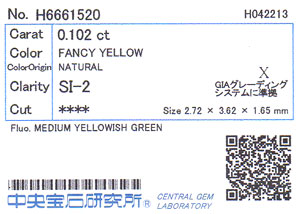 | カラー | Fancy Yellow ( ファンシー・イエロー ) |