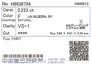 | 鑑定機関 | 中央宝石研究所 |