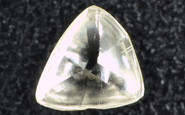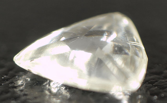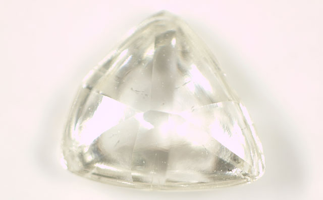![]() ▲正面画像 愛嬌のある三角形のマクル・・・ダイヤモンド原石。 |