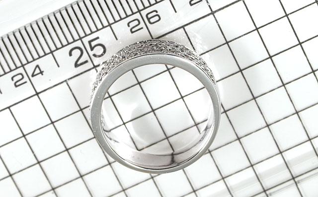 | リングのサイズについて | 現状 12号 ( 10号~14号までの対応となります ) 蛍光性ダイヤをセッティングしている部分のデザイン・強度を保護・維持等するため、リングの形状が真円ではなく、多少楕円になることがあります。あらかじめご了承下さいませ。 |