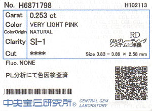 天然ピンクダイヤモンド ルース 0.253ct 【タイプ2a型のレア・ピンク・ダイヤモンド】 【中央宝石研究所】【送料無料】