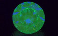 ![]() ▲蛍光性画像 黒い紙などの上に置いて、ブラックライトにあて、部屋を暗くするとこのような鮮やかな蛍光性を示します。 改めてダイヤモンドの魔力の虜(とりこ)になってしまいます。 |