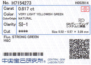 | ●蛍光性の面白いダイヤモンドです。 ●蛍光性とは、紫外線やX線など波長の短い光線を当てると放射ルミネッセンスの結果、第一次光とは違った色の第二次光を発する性質を言います。 一般的には、ブラックライトなどを当てることで簡単にダイヤなどの蛍光性を楽しむことが出来ます。 ●ダイヤモンドは通常、蛍光性が無い(None)、弱い(Faint)、が多く、蛍光性として多い色はブルーとなっています。 このダイヤのように元の色もグリーンで、蛍光性も鮮やかな緑色というキレイなものは持っていても良いダイヤだと思います。 ●通常光下ですとごく薄い黄緑色系の色調です。初々しく淡い新緑のようなイメージです。 ●カラオケボックスなどブラックライトのある場所ですと、通常光とは違う色を楽しむことが出来ると思います。 ●蛍光性の色は、少し黄色味も感じるグリーンのネオンカラーのような色調です。 ご注意 : ブラックライトによって波長が色々あるらしく、ブラックライトによっては少し違う色合いに見える場合もあります。あらかじめご了承下さいませ。 ●クラリティは、SI-1です。ルーペですと内包物や欠けなど確認できますが、。肉眼だとまず問題なしです。 ●カットは、「ラウンドブリリアントカット」です。 ●しかも、 Polish(ポリッシュ・・・研磨状態)もSymmetry(シンメトリー・・・対称性)も「Very Good(ベリーグッド)」という高レベルのラウンドブリリアントカット。 ●そして、特殊なスコープを通してダイヤをのぞくと、表面からは「8本のキューピッドの矢」のようなものが見え、裏面からは「8個のハート」が見える「ハートアンドキューピッド」。 ![]() ▲ハート・アンド・キューピッドイメージ画像 「キューピッドが矢でハートを射る」ということから、婚約指輪などに大人気です。 ●カットもとても綺麗なグリーンダイヤです。 ●0.6ct台と十分な大きさです。リング(指輪)やペンダントにも、片耳用ピアス、片耳用イヤリングに、また、こだわりの婚約指輪(エンゲージリング)・結婚指輪(マリッジリング、ウエディングリング)などへ加工(別料金)しても楽しめると思います。 ・ジュエリー加工を全て見る>> ・婚約指輪の選び方 ・カラーダイヤのご説明 ・ダイヤモンドのご説明 ・グリーンダイヤモンド ・蛍光性についての詳しい説明を見る>> ・燐光性についての詳しい説明を見る>> ![]() ▲蛍光性ストロンググリーン ダイヤモンド 比較画像 左側 品番:40748 / 右側 品番:40747 |