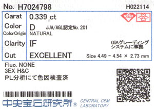 | クラリティ | IF ( Internally Flawless / インターナリーフローレス ) | |||||||||||||||||||||||||||||||||||