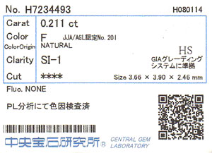 ●カラーは、ほぼ無色透明の「Fカラー」です。