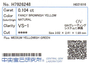 | カラー | Fancy Brownish Yellow ( ファンシー・ブラウニッシュ・イエロー ) |