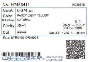 | カラー | Fancy Light Yellow (ファンシー・ライト・イエロー) |