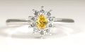 | ●愛知県のお客様(女性)にリングに加工してお届けいたしました。 センターのイエローダイヤのカラーを最大限に生かすよう、周囲にカラーレスのメレダイヤを配し、より一層美しいイエローを堪能できるリングに仕上がりました。 イエローダイヤの力が有るので、余計なデザインはかえって邪魔してしまうためシンプルな定番のデザインをお選び頂きました。 小さくても存在感のある逸品です。 お客様オーダー実例集を見る |
