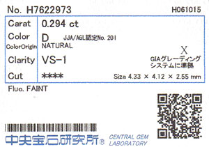 | 鑑定機関 | 中央宝石研究所 |