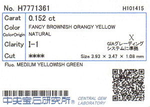 | カラー | Fancy Brownish Orangy Yellow ( ファンシー・ブラウニッシュ・オレンジー・イエロー ) |