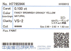 | カラー | Fancy Brownish Orangy Yellow ( ファンシー・ブラウニッシュ・オレンジー・イエロー ) |