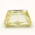 ●トラペーズ(台形)カットのダイヤモンドです。●台形…と言えば、富士山?●日本を象徴する国内最高峰の富士山(3776m)がユネスコの世界文化遺産に登録されました。正式名称は「富士山―信仰の対象と芸術の源泉」です。●「ダイヤモンド富士」とは、富士山頂に太陽が重なる瞬間、ダイヤモンドのように輝く現象 の事を言います。意味合いは違いますが、このダイヤモンドは、富士山の形状をしたダイヤモンド。カラーは、Fancy Light Yellow (ファンシー・ライト・イエロー)です。テリもよくキラキラと輝いた透明感は、朝日に照らされた崇高さを感じます。●もちろんナチュラルのカラーダイヤモンドです。ナチュラルとは、ダイヤそのものはもちろん、色の起源も全て天然の本物のカラーダイヤモンドのことを言います。●蛍光性は、ストロング・ブルー(Strong Blue),「青色」です。●ブラックライトなどにあてると、青色~青白色になりますので、見ていて時間を忘れます。●蛍光性とは、紫外線やX線など波長の短い光線を当てると放射ルミネッセンスの結果、第一次光とは違った色の第二次光を発する性質を言います。一般的には、ブラック・ライトなどを当てることで簡単にダイヤなどの蛍光性を楽しむことが出来ます。●カラオケボックスなどブラックライトのある場所ですと、通常光とは違う色を楽しむことが出来ると思います。ご注意 : ブラックライトによって波長が色々あるらしく、ブラックライトによっては少し違う色合いに見える場合もあります。あらかじめご了承下さいませ。●クラリティはSI-1。大小の傷や内包物等がルーペでは確認できますが、肉眼ではまず問題のないレベルだと思います。(目の良い方でしたら、見えるかもしれません。)●リング(指輪)やペンダントにも、片耳用ピアスや片耳用イヤリングに、また、こだわりの婚約指輪などへ加工(別料金)しても楽しめると思います。